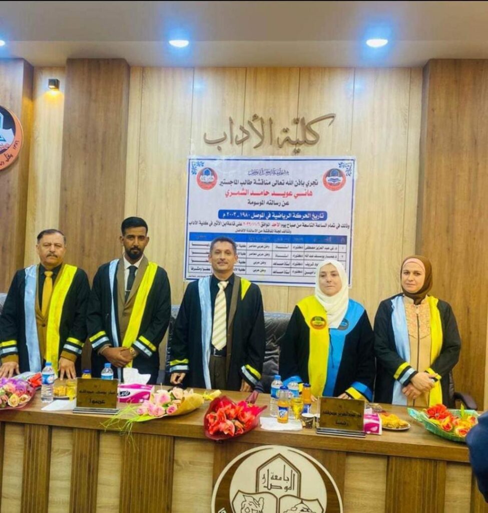 شاركت الاستاذ الدكتور نوار عبدالنافع الدباغ التدريسية في قسم اللغة العربية بكلية الاداب جامعة الموصل في لجنة مناقشة اطروحة الدكتوراه الموسومة ب (جهود التبريزي النقدية في شروحاته الشعرية ) للطالب احمد عماد مجيد في كلية التربية للعلوم الانسانية جامعة كركوك