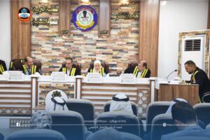 وجرت المناقشة للطالب سعد جاسم محمد عن رسالته الموسومة: “دراسة تداولية للسخرية في المسلسل الأمريكي (الحدائق والمتنزهات)”، حيث تناولت الدراسة الأساليب التداولية المستخدمة في بناء السخرية داخل الحوارات الدرامية للمسلسل، وانعكاساتها اللغوية والثقافية.