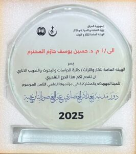 تدريسي من كلية الآداب – قسم التاريخ ينال كتاب شكر وتقدير من معالي وزير الثقافة والسياحة والآثار..