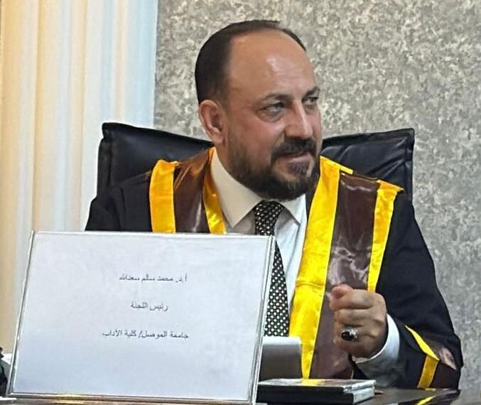 ترأس الأستاذ الدكتور محمد سالم سعد الله من قسم اللغة العربية في كلية الآداب لجنة مناقشة رسالة الماجستير الموسومة بـ «أنساق الخطاب الشعري في شعر نزار قباني» للطالبة إسراء فوزي أحمد، وذلك في كلية التربية الأساسية بجامعة زاخو يوم السبت الموافق 25 تشرين الأول 2025.