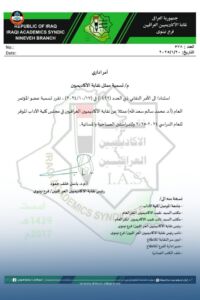 أصدرت نقابة الاكاديميين العراقيين. فرع نينوى، أمراً ادارياً بتسمية الأستاذ الدكتور محمد سالم سعد الله ممثلاً عن النقابة في مجلس كلية الآداب.