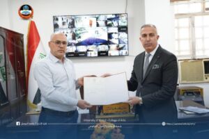 كرّم عميد كلية الآداب الأستاذ الدكتور حاتم فهد الطائي، اليوم، الثلاثاء ٢٠٢٥/٨/١٩، الأستاذ المساعد الدكتور مصطفى هاشم حنون، تقديراً لجهوده في تحديث السير الذاتية لتدريسيي الكلية على الموقع الإلكتروني.