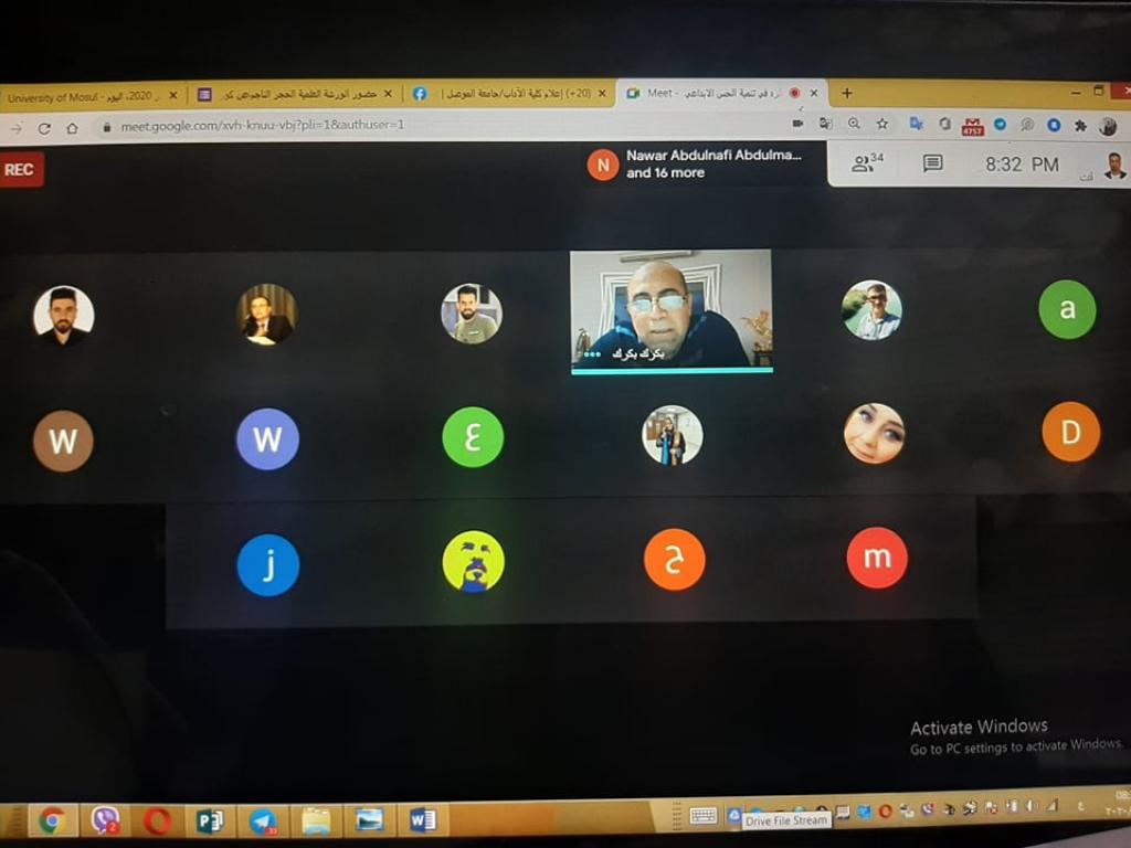 جامعة الموصل ممثلة بكلية الآداب تقيم ورشة عمل الكترونية بعنوان (الحجر الناجم عن كورونا واثره في تنمية الحس الابداعي)