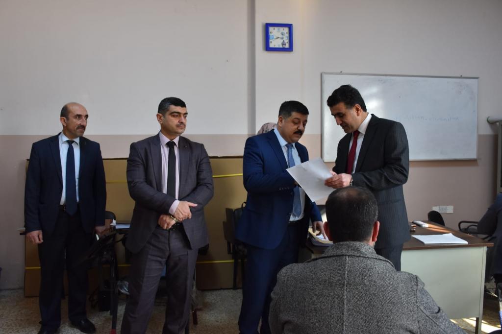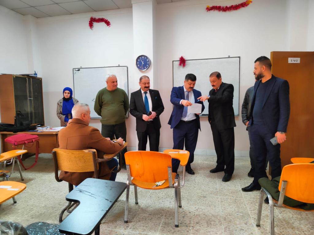 تفقد السيد عميد كلية الآداب المحترم الاستاذ المساعد الدكتور محمد علي محمد عفين المحترم و السيد المعاون العلمي الاستاذ الدكتور حارث حازم ايوب و السيد المعاون الاداري المحترم الاستاذ المساعد الدكتور صفوان ناظم داؤود مع رؤساء الاقسام سير الامتحانات الفصلية لطلبة الدراسات الاولية و النهائية لطلبة الدراسات العليا في كلية الآداب للعام الدراسي (2021 -2022) و ذلك يوم (الاحد) الموافق 09 كانون الثاني 2022.هدفت الجولة الى الاطلاع على سير امتحانات طلبة كلية الآداب الفصلية للدراسات الاولية و النهائية للدراسات العليا للعام الدراسي الحالي (2021 -2022) متمنين النجاح و التفوق للطلبة جميعا.لمشاهدة الفيديو التسجيلي للجولة يرجى النقر على الرابط ادناه:https://fb.watch/aqsCIHRJqk/