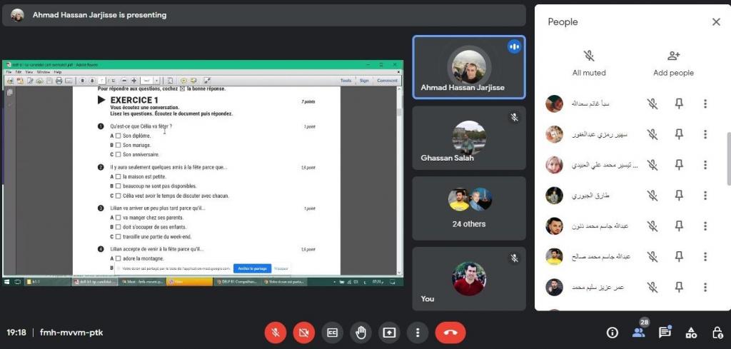 دورات تدريبية الكترونية لقسم اللغة الفرنسية ضمن التعليم المستمر عن آلية اختبار الديلف لثلاث مستويات