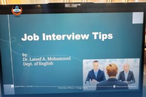 بإشراف السيد عميد كلية الاداب الاستاذ الدكتور حاتم فهد الطائي المحترم، أقامت وحدة التأهيل والتوظيف والمتابعة دورة بعنوان” كتابة السيرة الذاتية بطريقة احترافية ومهارات مقابلة العمل” وذلك يومي الاحد والاثنين ٢٧-٢٨ نيسان ٢٠٢٥، استهدفت الدورة طلبة وخريجي كلية الاداب. قدّم الدورة نخبة من الاساتذة المختصين في هذا المجال وهم كل من: