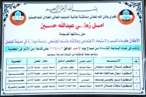 تطرقت الدراسة التي تقدمت بها الطالبة امل زكي عبدالله حسين في قسم علم الاجتماع إلى الاطفال كرماء النسب والاستبعاد الاجتماعي وعلاقته بالسلم المجتمعي