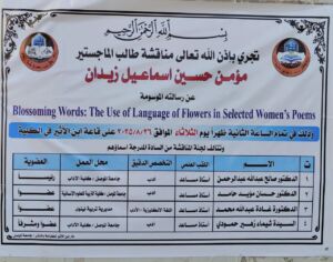 ناقش قسم اللغة الإنكليزية في كلية الآداب رسالة ماجستير عن Blossoming Words: The Use of Language of Flowers in Selected Women’s poems
