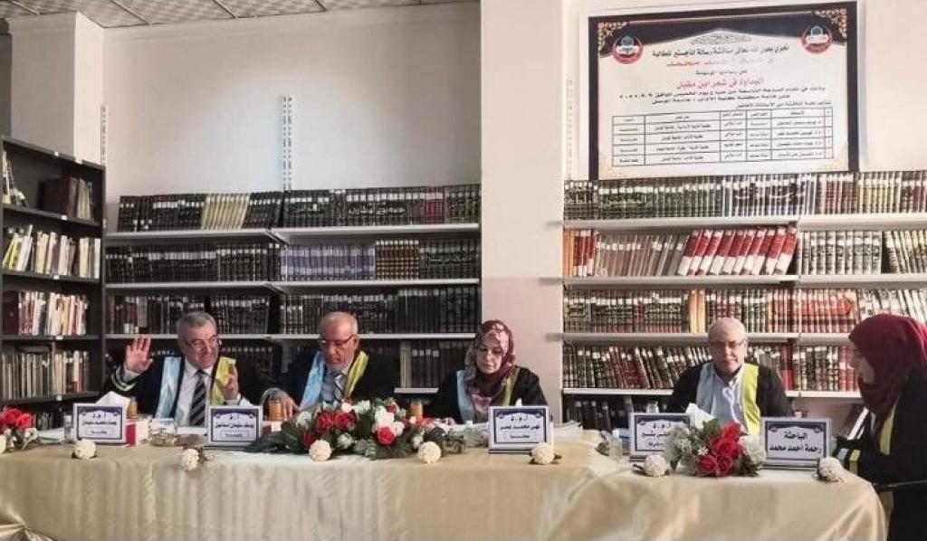 ناقش قسم اللغة العربية في كلية الآداب رسالة ماجستير بعنوان “البداوة في شعر ابن مقبل،” يوم (الخميس) الموافق 09 ايلول 2021 على قاعة مكتبة كلية الآداب، حضر جانبا منها السيد عميد كلية الآداب الاستاذ المساعد الدكتور محمد علي محمد عفين والسيد رئيس قسم اللغة العربية الاستاذ الدكتور معن يحيى محمد العبادي.تناولت الرسالة التي تقدمت بها الطالبة (رحمة أحمد محمد) في قسم اللغة العربية، محاولة الى لملمة الإشارات المبثوثة في شعر ابن مقبل لتشكيل رؤيته لبداوة، والوقوف على ما تعنيه له بوصفها نمطا للحياة، يستحيلُ عند البعضِ مع الوعي وانفتاحِ الرؤيةِ إلى ثقافةٍ، لها مرجعياتُها المتسلطةُ.تطرقت الدراسة الى ابن مقبل ،احد الشعراء العرب المقدمين، و الذي تميز بلغته الخاصة التي أشاد بها النقاد واللغويون، أحب الحياة البدوية، وتمسك بها إلى آخر يوم في حياته، التي امتدت من الجاهلية إلى عصر صدر الإسلام ثم إلى عصر الدولة الأموية، فقد آثر هذا النمط من الحياة على غيرها على الرغم من التحولات التي شهدها المجتمع عبر هذه العصور.وخلصت الدراسة إلى أن البداوة لها حضور ظاهر في شعر ابن مقبل، وأن إشاراته إليها في شعره جاءت على وجهين: إيجابي وسلبي، وأن الوجه الإيجابي كان يتجلى في الفكر والسلوك والإبداع، أما الوجه السلبي فكان يتجلى في الطبع والشعور والغفلة.ترأس لجنة المناقشة الأستاذ الدكتور يوسف سليمان إسماعيل من كلية التربية الاساسية في جامعة الموصل، وعضوية كل من الأستاذ المساعد الدكتور نهى محمد عمر والأستاذ المساعد الدكتور عصام محمد سليمان من جامعة دهوك، وبإشراف وعضوية الأستاذ المساعد الدكتور مقبول علي بشير.