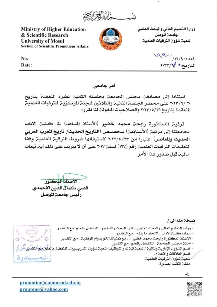 ناقشت كلية الآداب بجامعة الموصل اليوم الخميس6تموز ٢٠٢٣ رسالة ماجستير عن : ( شعرية الاستهلال في شعر الارجاني ت 544هجرية ) وحضر المناقشة عدد من التدريسيين وطلبة الدراسات العليا ..