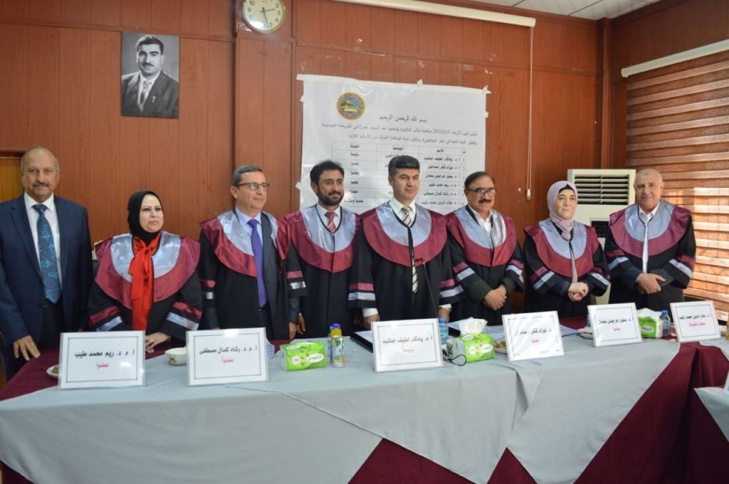 ترأس لجنة المناقشة الأستاذ الدكتور فراس عباس فاضل / كلية الآداب / جامعة الموصل وعضوية كل من : الأستاذ المساعد الدكتور خالد محمود حمي / كلية الآداب / جامعة الموصل والمدرس الدكتور سيران قاسم محمود / مركز وزارة التعليم العالي والبحث العلمي / الدائرة الإدارية والمالية وعضوية وإشراف الأستاذ الدكتورة نادية صباح محمود / كلية الآداب / جامعة الموصل.