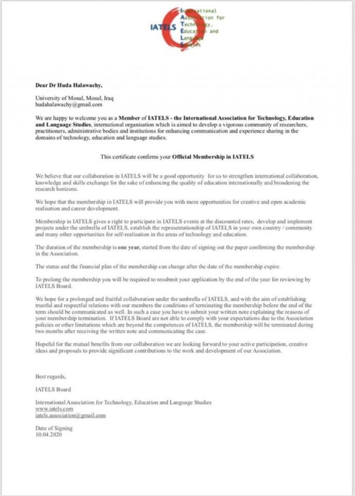عضوية في الاتحاد العالمي للتكنلوجيا والتعليم والدراسات اللغوية