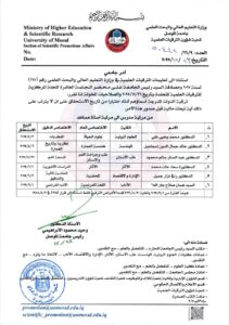 تتقدّم عمادة كلية الآداب، ممثّلةً بعميدها الأستاذ الدكتور حاتم فهد هنو الطائي، وباسم جميع منتسبي الكلية، بأصدق التهاني والتبريكات إلى التدريسي في قسم اللغة الفرنسية، الأستاذ غسان صلاح جارالله، بمناسبة حصوله على الترقية العلمية من مرتبة مدرس إلى مرتبة أستاذ مساعد.