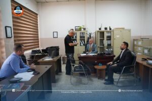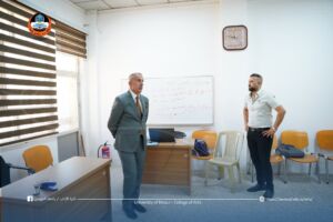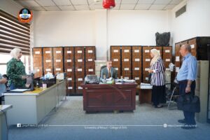 تفقد السيد عميد كلية الآداب الأستاذ الدكتور حاتم فهد الطائي، يرافقه السيد معاون العميد للشؤون الإدارية الدكتور صفوان ناظم، الشعب والوحدات الإدارية في الكلية، للإطلاع على سير العمل والإجراءات المتبعة فيها، والوقوف على مستوى الأداء الإداري بما يخدم تطور العملية الإدارية في الكلية.