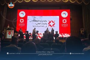 شارك السيد عميد كلية الآداب، الأستاذ الدكتور حاتم فهد الطائي، في احتفالية جائزة اللغة العربية وآدابها التي أُقيمت في مقر وزارة التعليم العالي والبحث العلمي في بغداد.