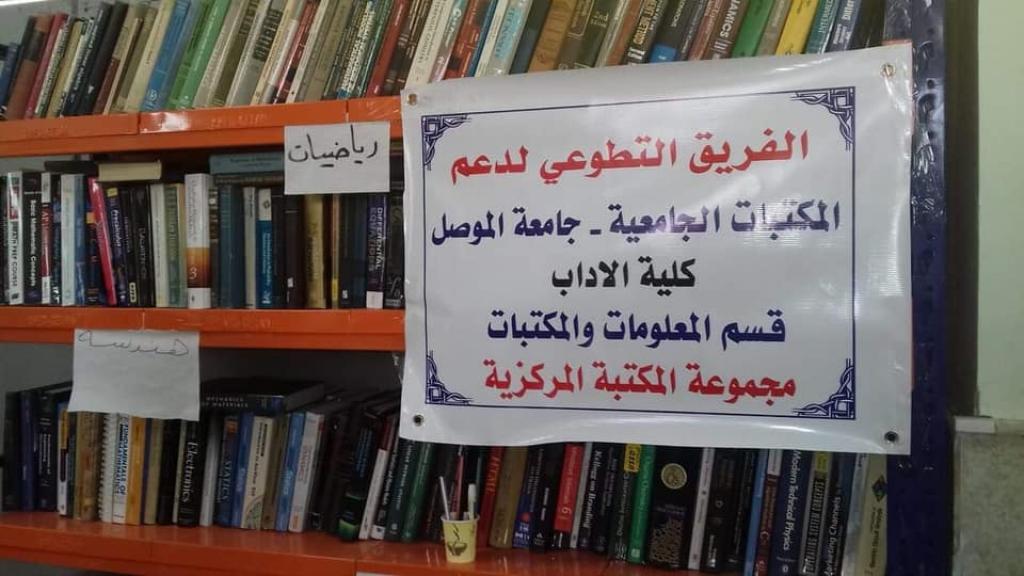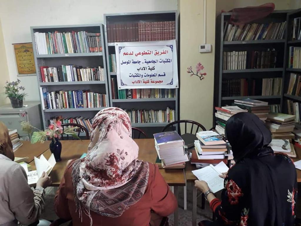 تحت شعار الجامعة في خدمة المجتمع بدأ قسم المعلومات والمكتبات مع الفريق التطوعي لدعم المكتبات الجامعية ممارسته الميدانية الاولى في مكتبات جامعة الموصل ( المكتبة المركزية قاعة 2 ومكتبة كلية الاثار ومكتبة كلية الآداب ،،،) فهرسة وتجليدا وترتيبا تمهيدا للمرحلة الثانية لهذه الممارسة التي ستكون في مكتبات مدينة الموصل ،،،