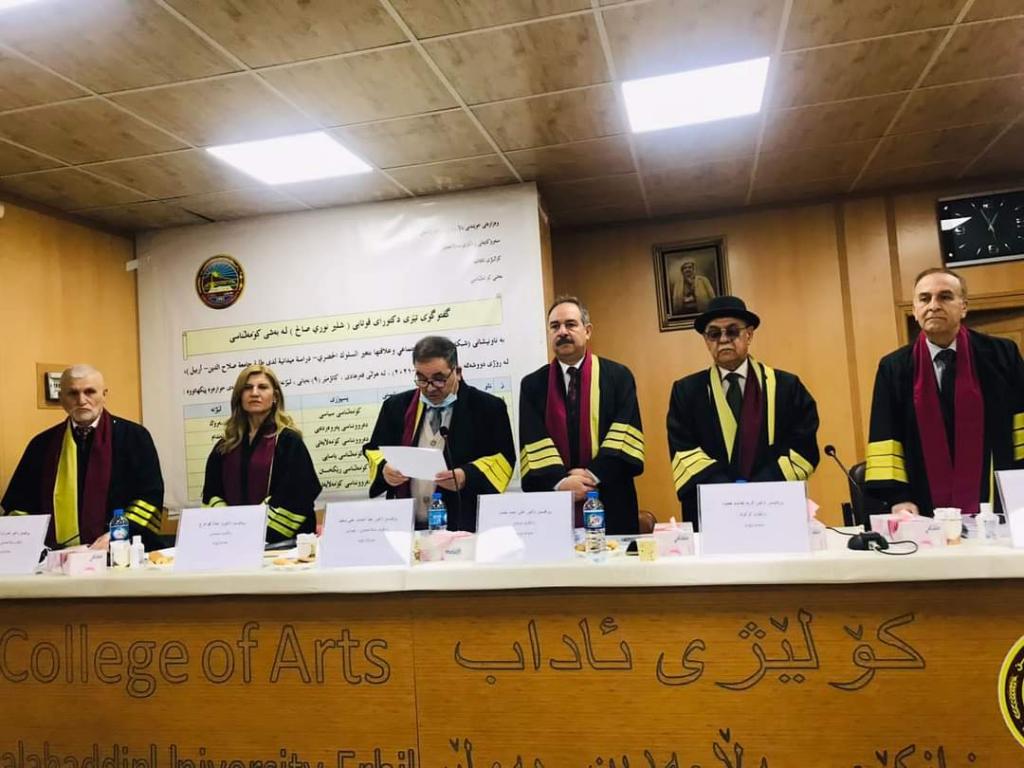 مشاركة تدريسي في عضوية لجنة مناقشة اطروحة دكتوراه عن شبكات التواصل الاجتماعي وعلاقتها بتغير السلوك الحضري من خلال دراسة ميدانية في جامعة صلاح الدين