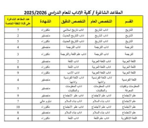 وفق المقاعد الشاغرة المرفقة في ادناه :