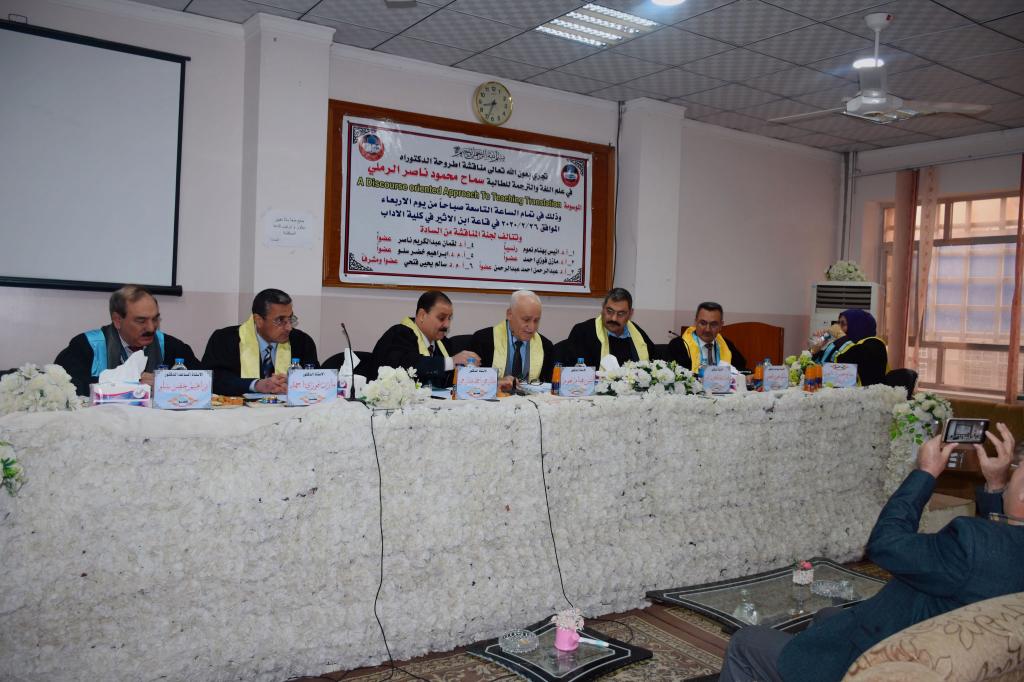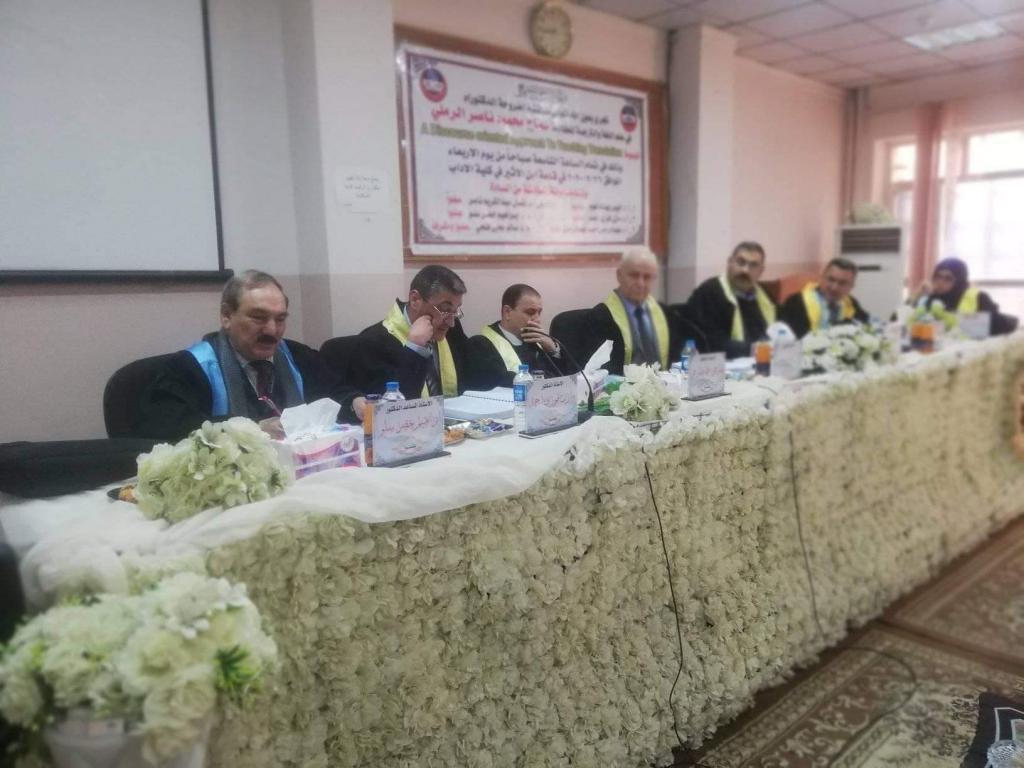 جرت يوم أمس الأربعاء الموافق 26/2/2020 مناقشة اطروحة الدكتوراه في الترجمة للطالبة سماح محمود الرملي على قاعة ابن الأثير في كلية الآداب عن اطروحتها الموسومة (A Discourse Oriented Approach To Teaching Translation ) بإشراف أ.م.د سالم يحيى فتحي وتكونت لجنة المناقشة من أ.د أنيس بهنام نعوم رئيساً وعضوية كلا من أ.م.د إبراهيم خضر سلو ، و ا.د٠ مازن فوزي أحمد، و ا.د٠ عبدالرحمن أحمد عبد الرحمن ، و ا.د٠ لقمان عبد الكريم ناصر ، وجرت المناقشة بحضور السيد مساعد رئيس الجامعة للشؤون العلمية