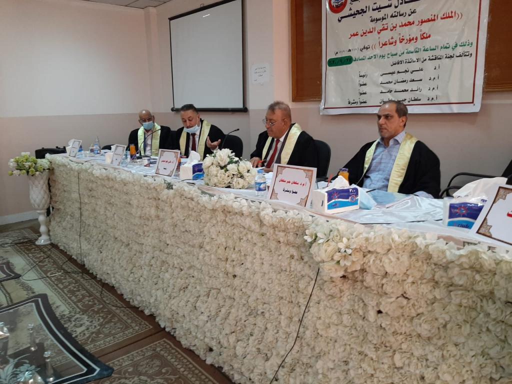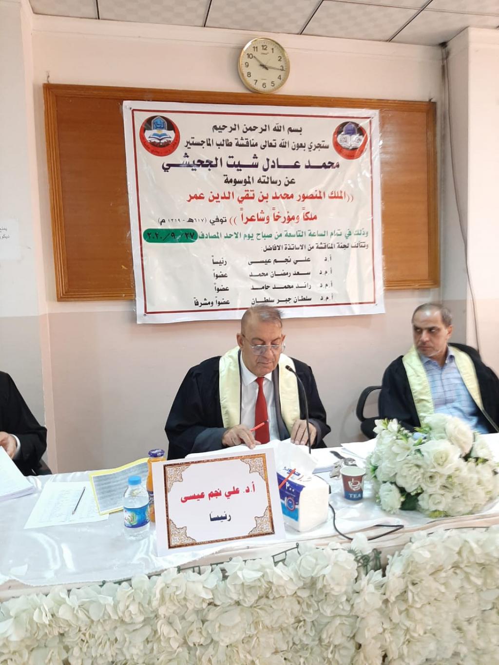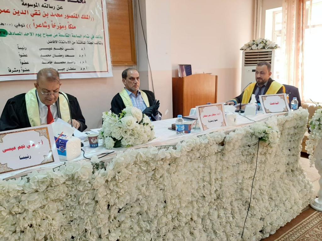 مناقشة رسالة الماجستير في التاريخ الموسومة بـ(الملك المنصور محمد بن تقي الدين عمر (ت617هـ ـ 1219م) ملكا ومؤرخا وشاعرا)