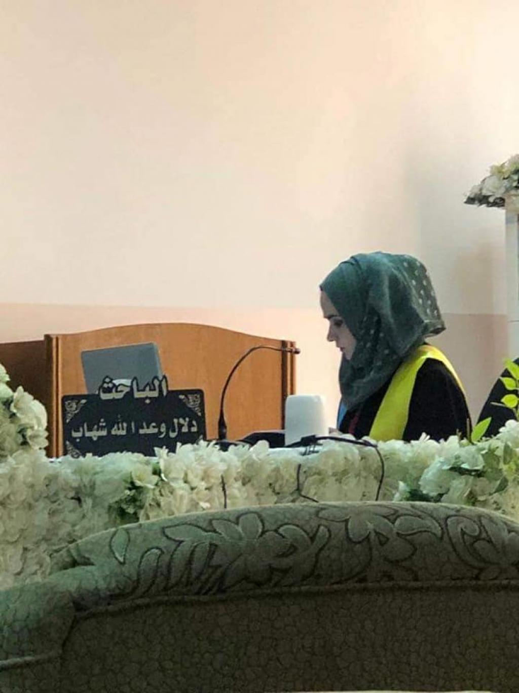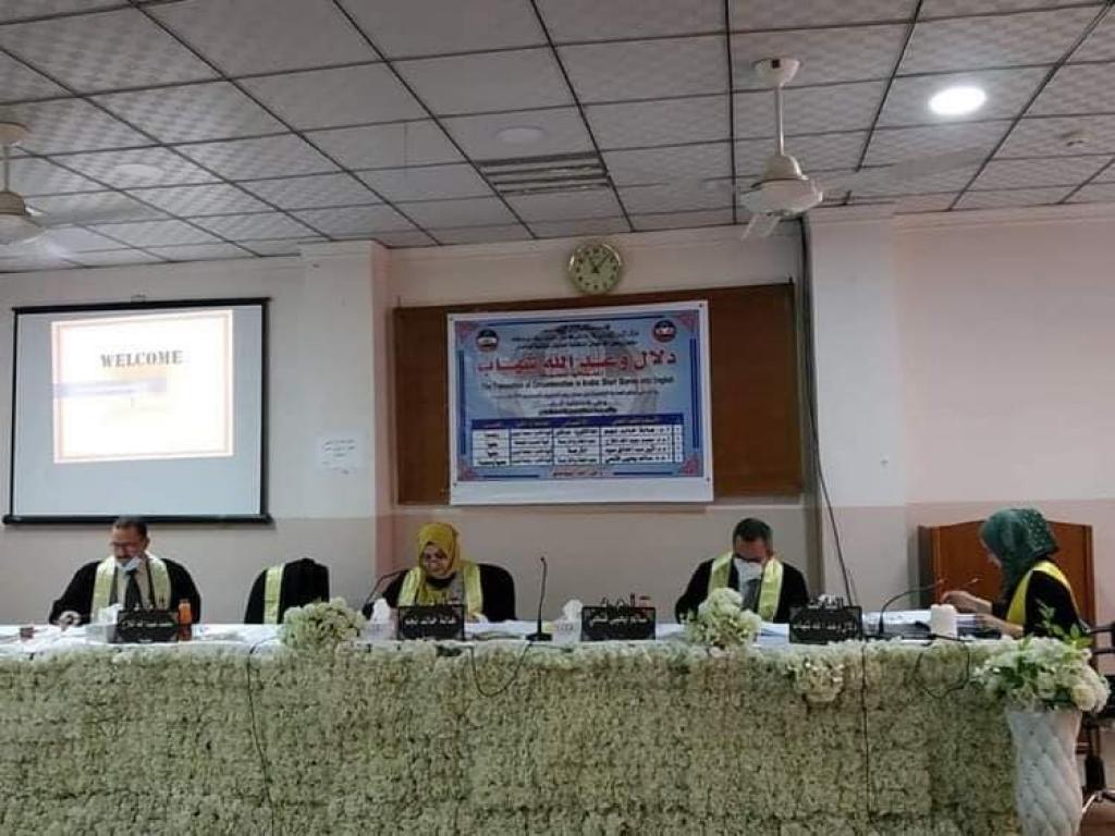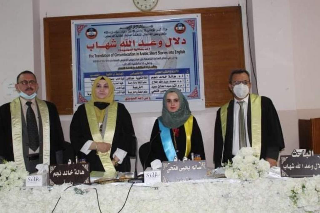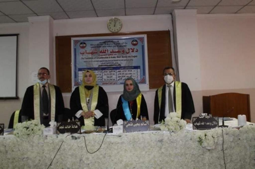 مناقشة رسالة الماجستير في الترجمة للطالبة دلال وعد الله شهاب الحيالي الموسومة بـ(The Translation of circumlocution in Arabic short stories into English)