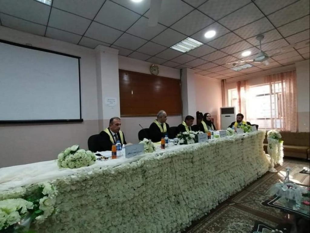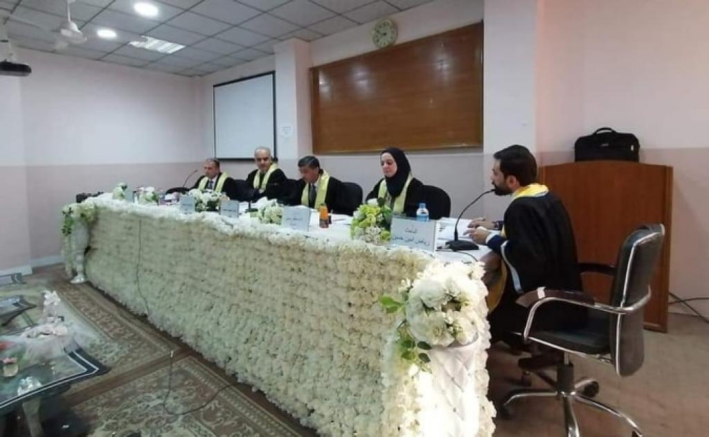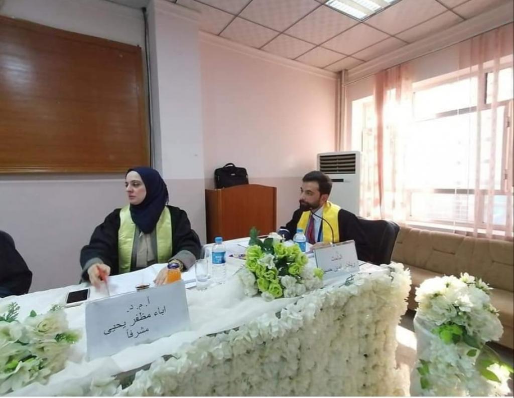 بإشراف أ. م. د آباء مظفر يحيى، وتالفت لجنة المناقشة من أ.د كمال حازم حسين رئيسا، وعضوية كلا من ا.د أحمد محمود أحمد، و أ.م.د مروان نجيب توفيق.