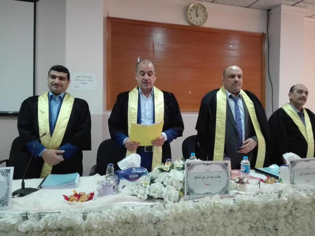 جرت يوم الاثنين المصادف 7/10/3019 مناقشة رسالة الماجستير للطالب احمد سلطان الخفاجي الموسومة ب ( المؤسسة العسكرية في برامج الوزارات العراقية في العهد الملكي ) برئاسة الاستاذ المساعد الدكتور هاشم عبدالرزاق والاستاذ المساعد الدكتور فارس محمود عضوا الاستاذ المساعد الدكتور سعد توفيق عزيز. عضوا والاستاذ الدكتور ذاكر محي الدين عضوا ومشرفا