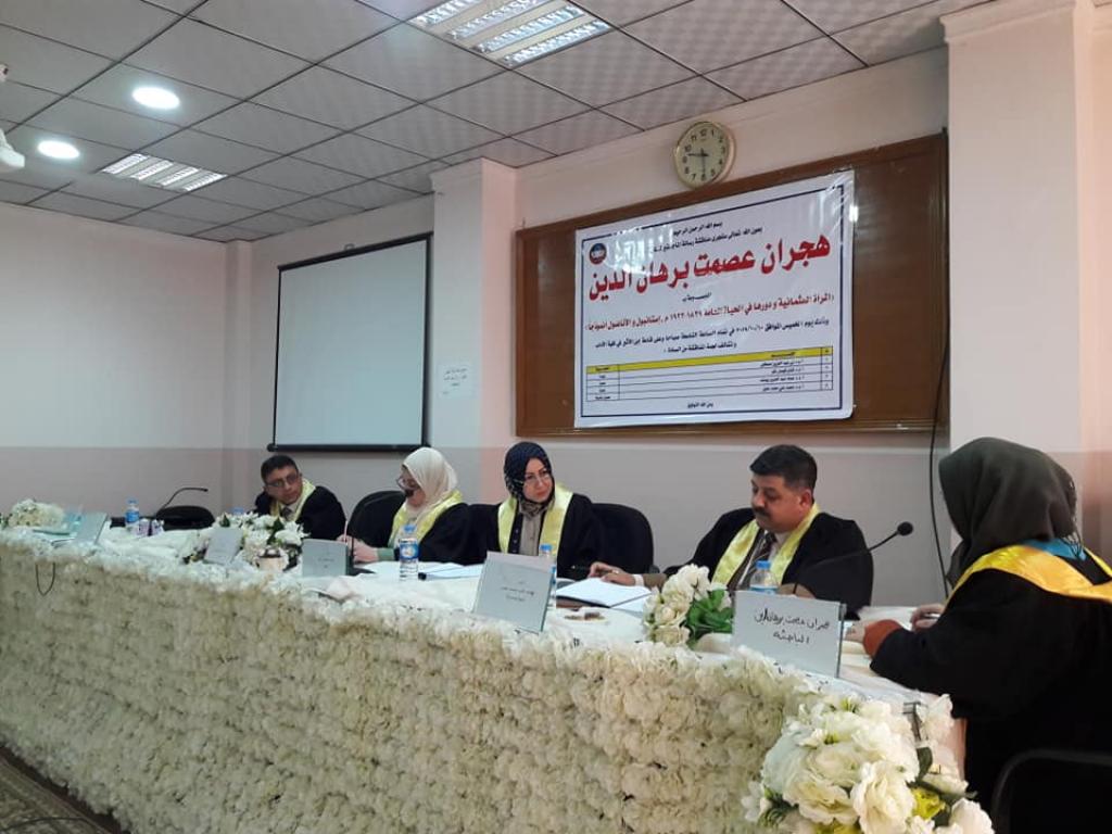 جرت اليوم الخميس الموافق 10/10/2019 مناقشة رسالة ماجستير في التاريخ للطالبة هجران عصمت برهان الدين عن رسالتها الموسومة(المرأة العثمانية ودورها في الحياة العامة 1839-1923 استنابول والاناضول انموذجا )باشراف أ.م.د محمد علي محمد عفين، وتألفت لجنة المناقشة من أ.م.د لمى عبد العزيز مصطفى رئيسا، وعضوية كلا من أ.م.د غسان وليد مصطفى، و أ.م.د عماد عبد العزيز يوسف.
