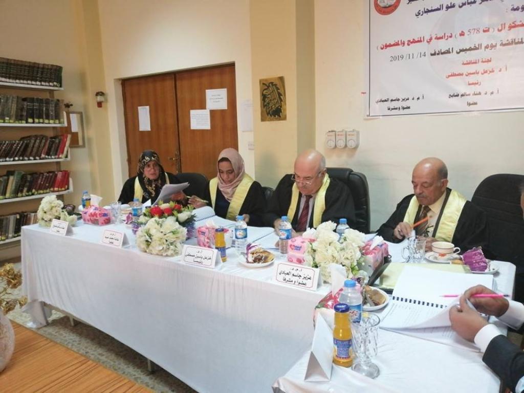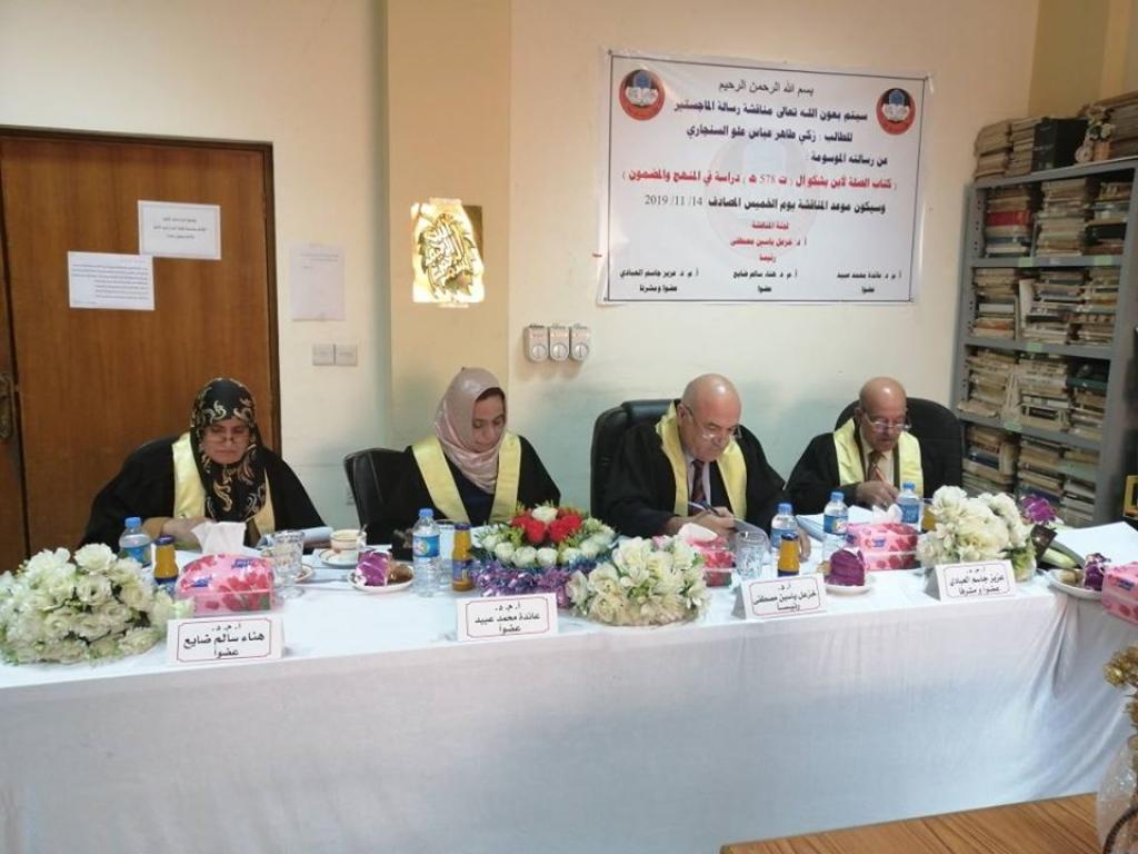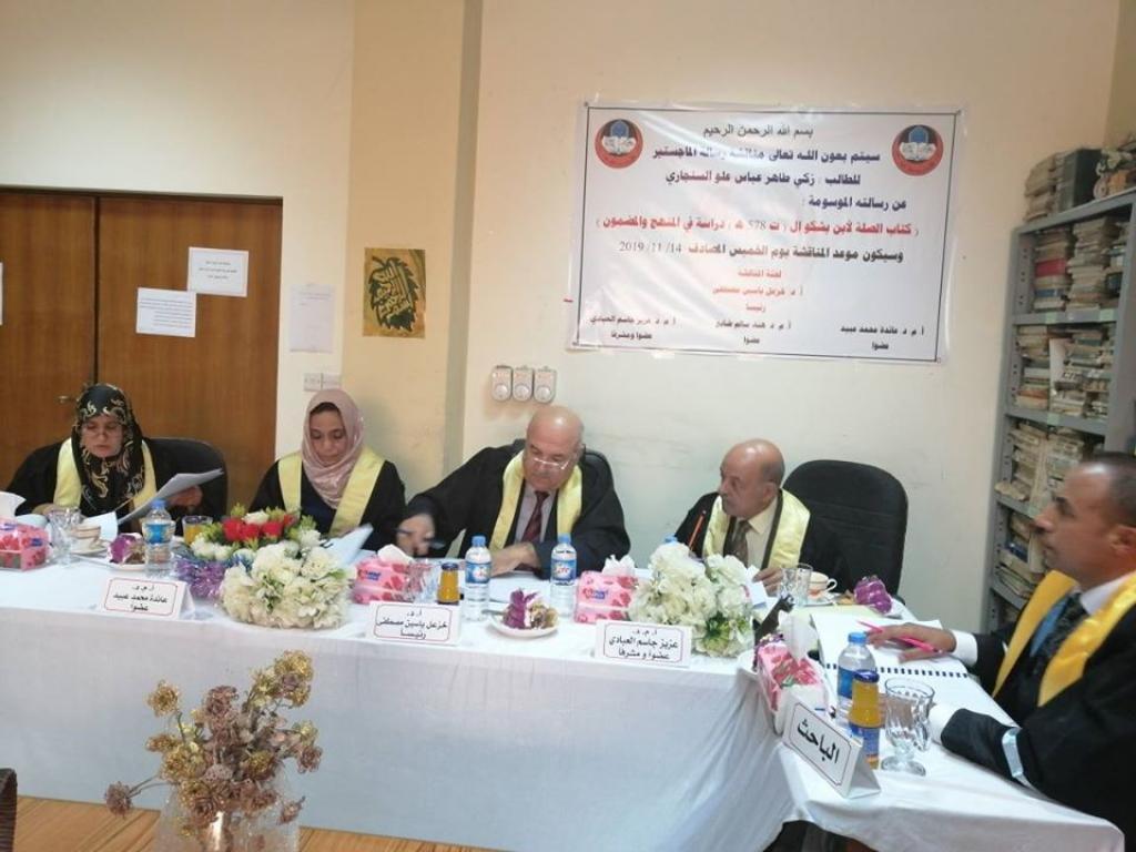 جرت اليوم الخميس الموافق 14/11/2019 في كلية الآداب مناقشة رسالة ماجستير في التاريخ للطالب زكي طاهر عباس السنجاري عن رسالته الموسومة ( كتاب الصلة لابن بشكو ال (ت ٥٧٨ هـ) دراسة في المنهج والمضمون) بإشراف أ. م. د عزيز جاسم العبادي، وتألفت لجنة المناقشة من أ. د خزعل ياسين مصطفى رئيسا، وعضوية كلّ من ا.م.د عائدة محمد عبيد، ا. م. د هناء سالم ضايع.