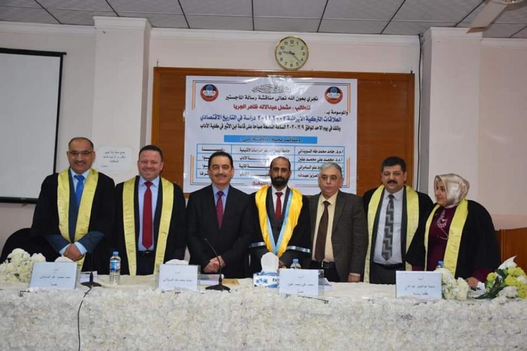 جرت اليوم الأحد الموافق 9/2/2020 وعلى قاعة ابن الأثير في كلية الآداب مناقشة رسالة ماجستير في التاريخ للطالب مشعل عبد الاله ظاهر عن رسالته الموسومة العلاقات التركية الايرانية 2002-2011 دراسة في التاريخ الاقتصادي بإشراف أ.م.د نسيبة عبدالعزيز عبدالله، وتالفت لجنة المناقشة من أ.م.د حامد محمد طه رئيسا، وعضوية كلا من أ.م.د محمد علي محمد عفين، و ا.م.د أحمد محمود علو ،وجرت المناقشة بحضور السيد رئيس جامعة الموصل الاستاذ الدكتور قصي الاحمدي