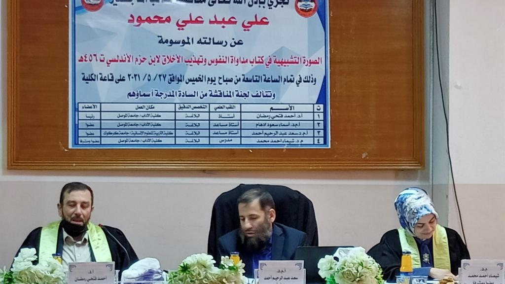 مناقشة رسالة ماجستير في اللغة العربية (الصورة التشبيهية في كتاب مداواة النفوس وتهذيب الاخلاق لابن حزم الاندلسي (ت 456هـ))