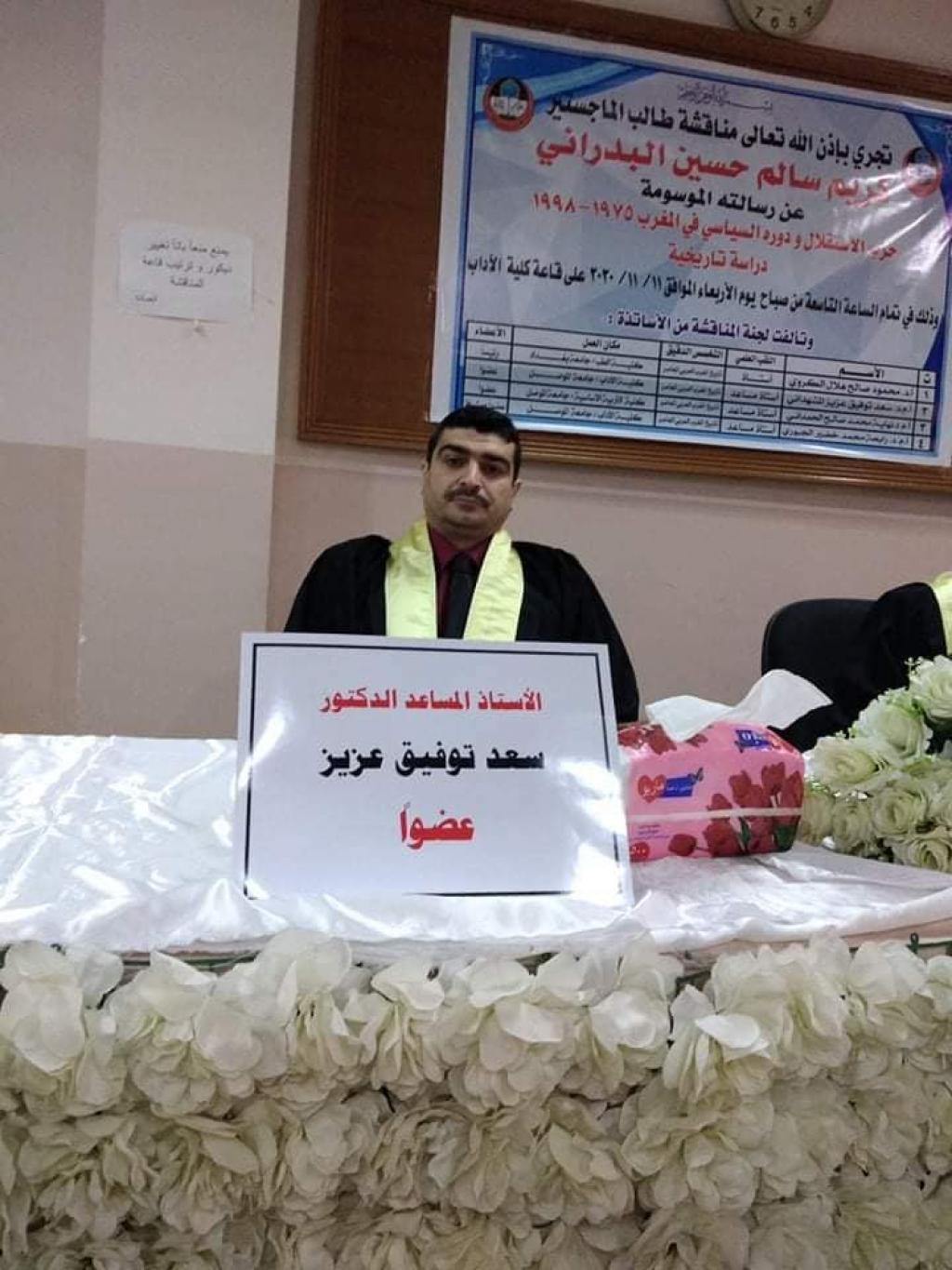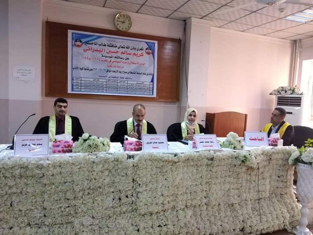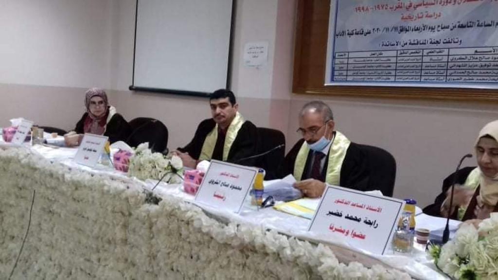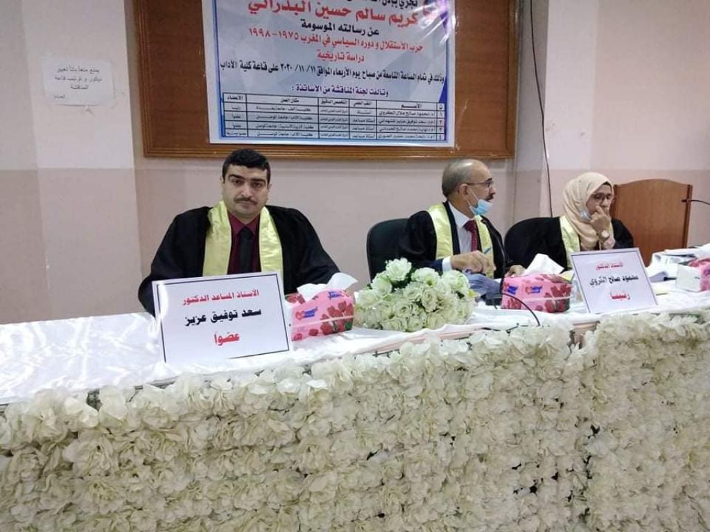 مناقشة رسالة ماجستير في قسم التاريخ بعنوان (حزب الاستقلال ودوره السياسي في المغرب 1975 – 1998 )