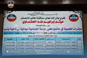 مناقشة رسالة ماجستير في كلية الآداب ـ قسم علم الاجتماع بعنوان “مؤشرات الخصوبة في مجتمع محلي – دراسة اجتماعية ميدانية في ناحية يثرب”