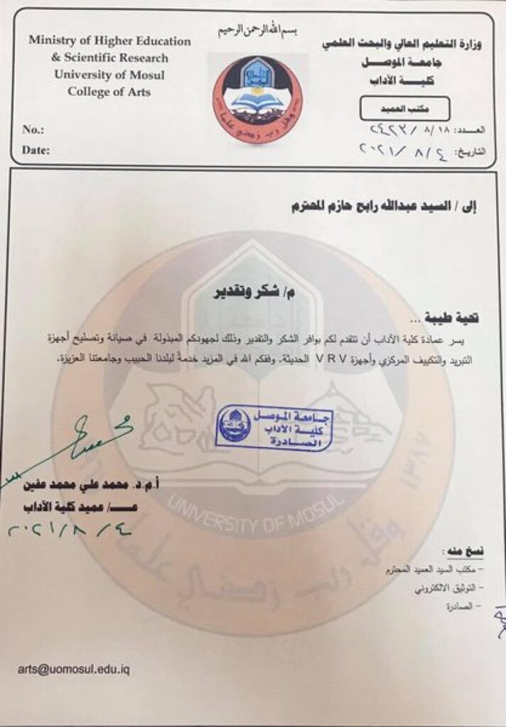 مناقشة رسالة ماجستير- قسم اللغة الفرنسيةجرت بعون الله مناقشة رسالة الماجستير في قسم اللغة الفرنسية للطالبة (وسن نوري جاسم) و الموسومة (أثر تعليم اللغة الفرنسية وتعلمها بوصفها لغة أجنبية عبر الكتب المنهجية في المدارس الثانوية العراقية بين 1970- 2020 (بغداد و الموصل أنموذجا)) اليوم الاربعاء الموافق 4 _8_2021 على قاعة مكتبة كلية الآداب.وتهدف هذه الرسالة الى تحليل عملية تعليم اللغة الفرنسية وتعلّمها بوصفها لغة اجنبية في المدارس المتوسطة والثانوية العراقية التي تعتمد على مناهج مقررة من قبل وزارة التربية منذ ١٩٧٠ إلى ٢٠٢٠ .إذ تسلط الضوء على العملية التربوية المتمثلة بتعليم وتعلم هذه اللغة وجوانبها النظرية والتطبيقية. فمن الناحية النظرية، يلقي البحث الضوء على المناهج الدراسية الثلاثةLa France en direct, Le Nouveau Sans Frontières, Génération A1 و التي تم تدريسيها خلال الفترة المذكورة أعلاه ويبين أثرها في الواقع التربوي في المدارس الثانوية العراقية عبر تشخيص الجوانب الإيجابية في تطوير الواقع التربوي والسلبيات والتحديات التي تواجه تدريس منهج اللغة الفرنسية وانعكاس ذلك في تطوير الواقع التربوي. اما من الناحية التطبيقية، فقد تناول البحث الدور الفعال لوزارة التربية /المديرية العامة للمناهج/شعبة اللغات الاجنبية في تعزيز تعليم وتعلّم اللغة الفرنسية وتطوير آلياتها من خلال تعزيز الصياغة المنهجية لكتاب اللغة الفرنسية بما يتلاءم مع متطلبات تطوير العملية التربوية، فضلاً عن دور السفارة الفرنسية في العراق والمعاهد الثقافية الفرنسية.كما و كانت هذه المناقشة بإشراف الاستاذ المساعد الدكتور محمد زهير زيدان وقد تألفت لجنة المناقشة من الاستاذ الدكتور مؤيد عباس عبد الحسن (رئيسا) والأستاذ المساعد الدكتورة عواطف نصيف جاسم (عضوا) والاستاذ المساعد الدكتورة منال حمدي فتحي (عضوا).