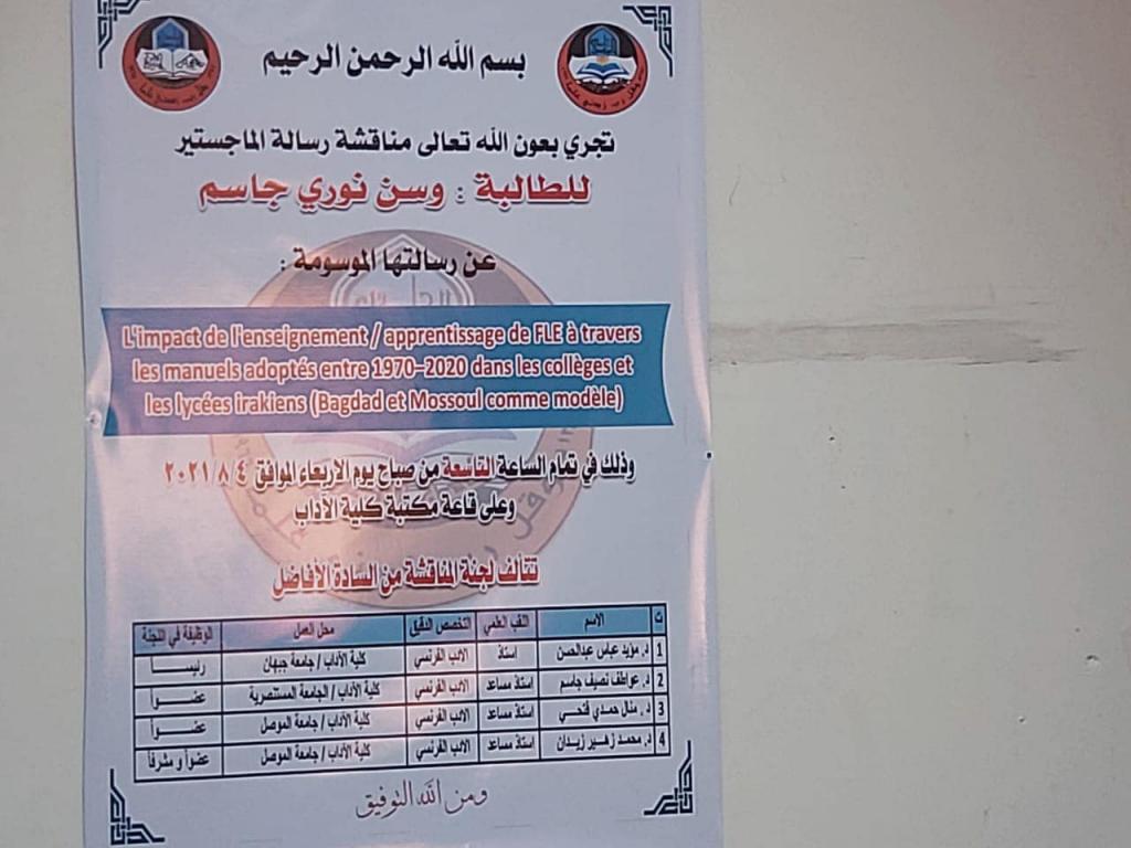 مناقشة رسالة ماجستير- قسم اللغة الفرنسية
