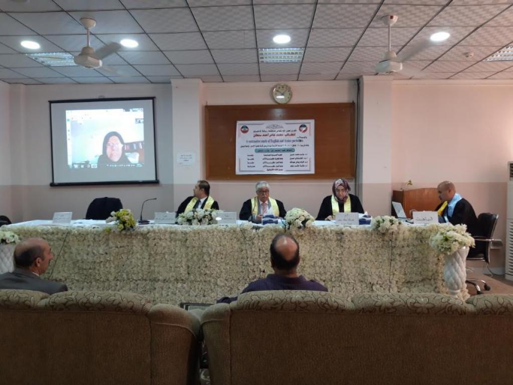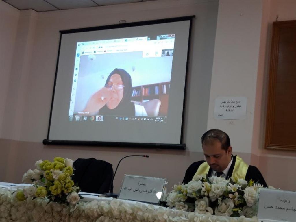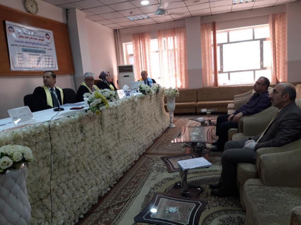 جرت بعون الله تعالى وفضله مناقشة رسالة الماجستير للطالب محمد عامر احمد سلطان و الموسومة:‏A Contrastive StudyOf English and Arabic Particlesبمشاركة اساتذة من قسمي اللغة الإنكليزية و الترجمة و مشاركة ا. م. د. شفاء هادي حسين من جامعة تكريت عن طريق تطبيق google meet وذلك في يوم الأربعاء الموافق 29 / 4/ ٢٠٢٠ الساعة العاشرة صباحًا على قاعة ابن الأثير / كلية الآداب / جامعة الموصل وتألفت لجنة المناقشة من السادة الأفاضل ا. د جاسم محمد حسن كلية الحدباء الجامعة رئيسًا ا. م. د. شفاء هادي حسين جامعة تكريت / كلية الآداب عضوًا م. د. اشرف رياض عبدالله جامعة الموصل / كلية الآداب عضوًا ا. د. هالة خالد نجم جامعة الموصل / كلية الآداب عضوًا و مشرفًا