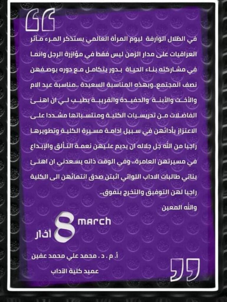 #ندوةعلمية?برعاية السيد رئيس جامعة الموصل الأستاذ الدكتور قصي كمال الدين الاحمدي المحترموبإشراف السيد عميد كلية الآداب الدكتور محمد علي محمد عفين المحترمتقيم كلية الآداب ممثلة بقسم المعلومات والمكتبات بالتعاون مع وحدة التعليم المستمر ندوة علمية الكترونية بعنوان (بناء المعرفة في ظل جائحة كورونا) يوم الخميس الموافق 4/3/2021 الساعة السادسة مساء على تطبيق (google meet) تحت الرابط (https://meet.google.com/cjc-gher-nex)#الدعوةعامةللحضورعبرالرابط#شعبةالاعلام_والعلاقات?