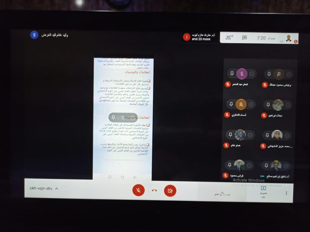 ندوة علمية الكترونية بعنوان (الدلالات النفسية والاجتماعية والطبية للعنف في المجتمع الموصلي )