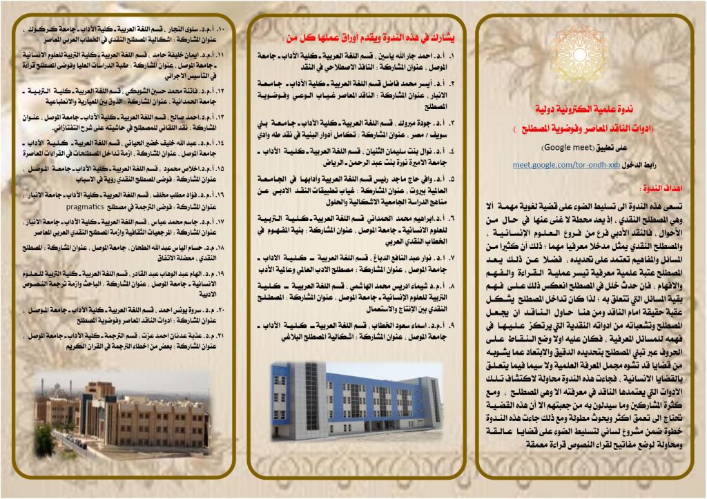- م.د. سروة يونس احمد ، قسم اللغة العربية ـ كلية الآداب ـ جامعة الموصل ، عنوان المشاركة : ادوات الناقد المعاصر وفوضوية المصطلح