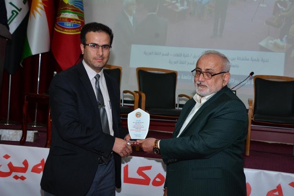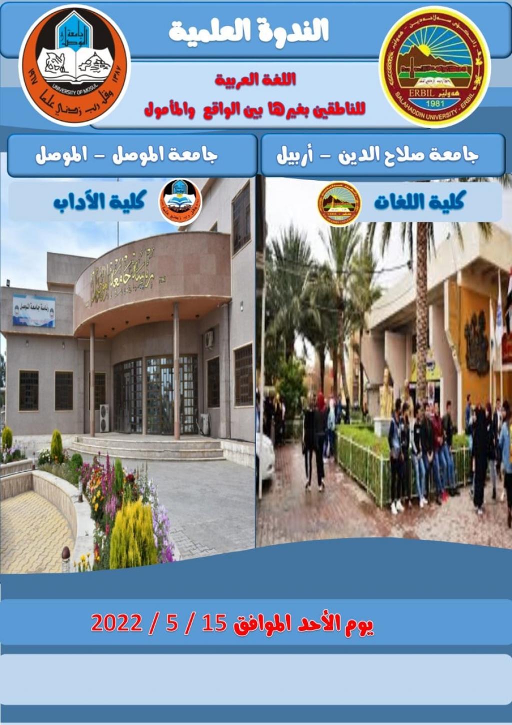 برعاية السيد رئيس جامعة الموصل الأستاذ الدكتور قصي كمال الدين الاحمدي المحترم وبرعاية السيد رئيس جامعة صلاح الدين الأستاذ الدكتور كامران يونس محمد أمين المحترم وبإشراف السيد عميد كلية الآداب الدكتور محمد علي محمد عفين المحترم وبإشراف السيد عميد كلية اللغات الدكتور عاطف عبدالله فرهادي المحترم ، تقيم جامعة الموصل ممثلة بكلية الآداب وجامعة صلاح الدين ممثلة بكلية اللغات ندوة علمية مشتركة بعنوان “اللغة العربية للناطقين بغيرها بين الواقع والمأمول” يوم الاحد الموافق 2022 / 5 / 15 الساعة التاسعة صباحا في قاعة كوجر بيركار- المركز الثقافي في جامعة صلاح الدين- أربيلاهداف الندوة:تأتي هذه الندوة ضمن نشاطات قسم اللغة العربية في الانفتاح على الجامعات الأخرى من أجل التلاقح العلمي والثقافي ومحاولة مد جسور التعاون العلمي الذي يصب في مصلحة الجانب العلمي والثقافي والاجتماعي ، ويأتي هذا النشاط التواصلي ليسلط الضوء على مسألة مهمة الا وهي واقع اللغة العربية لدى الاخرين ـ غير الناطقين بـها ـ وهذه الندوة حلقة مهمة تبحث في واقع لغتنا واليات النهوض بـها وما نطمح أن تصل اليه لدى الآخرين وكذلك أساليب تدريسها في الجامعات الأخرى ومدى فاعلية المناهج التي تدرس بـها ، وكذلك تسليط الضوء على واقع اللغة العربية في جامعاتنا ومقارنة المناهج والاليات بين جامعاتنا والجامعات الأخرى وتكمن أهمية هذه الندوة أنّـها تحاول إيجاد حلول في حال وجود ضعف في تدريسها سواء اكان الضعف في مناهجنا أم في المناهج الأخرى ، وكذلك إيجاد مواضع القوة والنجاح في تدريسها لدى الجامعتين ـ جامعة الموصل وجامعة صلاح الدين ـ ومن ثم الخروج بتوصيات بما يخدم اللغة العربية لغة القرآن الكريم.الاشراف العام :الدكتور محمد علي محمد عفين ـ عميد كلية الآداب ـ جامعة الموصلالدكتور عاطف عبدالله فرهادي ـ عميد كلية اللغات ـ جامعة صلاح الدينالمشاركون:أ.د. دلدار غفور حمد أمين / جامعة صلاح الدين – أربيل (تعليم اللغة العربية للناطقين بغيرها: معوقات وحلول)أ. د. دلَخؤش جارالله حسين و أ. د. أشواق محمّد إسماعيل / جامعة صلاح الدين- أربيل (النحو الميسّر للناطقين بغير اللغة العربية)أ.د.نوار عبدالنافع الدبّاغ / جامعة الموصل (إشكالية فهم القرآن الكريم عند الناطقين بغير العربية)أ.د.عماد عبد يحيى/ جامعة الموصل (كتاب اللغة العربية للصف العاشر الدراسة الكوردية – الجزء الأول ندوة علمية مشتركة عن اللغة العربية للناطقين بغيرها بين الواقع والمأمول – قسم اللغة العربيةبرعاية السيد رئيس جامعة الموصل الأستاذ الدكتور قصي كمال الدين الاحمدي المحترم وبرعاية السيد رئيس جامعة صلاح الدين الأستاذ الدكتور كامران يونس محمد أمين المحترم وبإشراف السيد عميد كلية الآداب الدكتور محمد علي محمد عفين المحترم وبإشراف السيد عميد كلية اللغات الدكتور عاطف عبدالله فرهادي المحترم ، تقيم جامعة الموصل ممثلة بكلية الآداب وجامعة صلاح الدين ممثلة بكلية اللغات ندوة علمية مشتركة بعنوان “اللغة العربية للناطقين بغيرها بين الواقع والمأمول” يوم الاحد الموافق 2022 / 5 / 15 الساعة التاسعة صباحا في قاعة كوجر بيركار- المركز الثقافي في جامعة صلاح الدين- أربيلاهداف الندوة:تأتي هذه الندوة ضمن نشاطات قسم اللغة العربية في الانفتاح على الجامعات الأخرى من أجل التلاقح العلمي والثقافي ومحاولة مد جسور التعاون العلمي الذي يصب في مصلحة الجانب العلمي والثقافي والاجتماعي ، ويأتي هذا النشاط التواصلي ليسلط الضوء على مسألة مهمة الا وهي واقع اللغة العربية لدى الاخرين ـ غير الناطقين بـها ـ وهذه الندوة حلقة مهمة تبحث في واقع لغتنا واليات النهوض بـها وما نطمح أن تصل اليه لدى الآخرين وكذلك أساليب تدريسها في الجامعات الأخرى ومدى فاعلية المناهج التي تدرس بـها ، وكذلك تسليط الضوء على واقع اللغة العربية في جامعاتنا ومقارنة المناهج والاليات بين جامعاتنا والجامعات الأخرى وتكمن أهمية هذه الندوة أنّـها تحاول إيجا