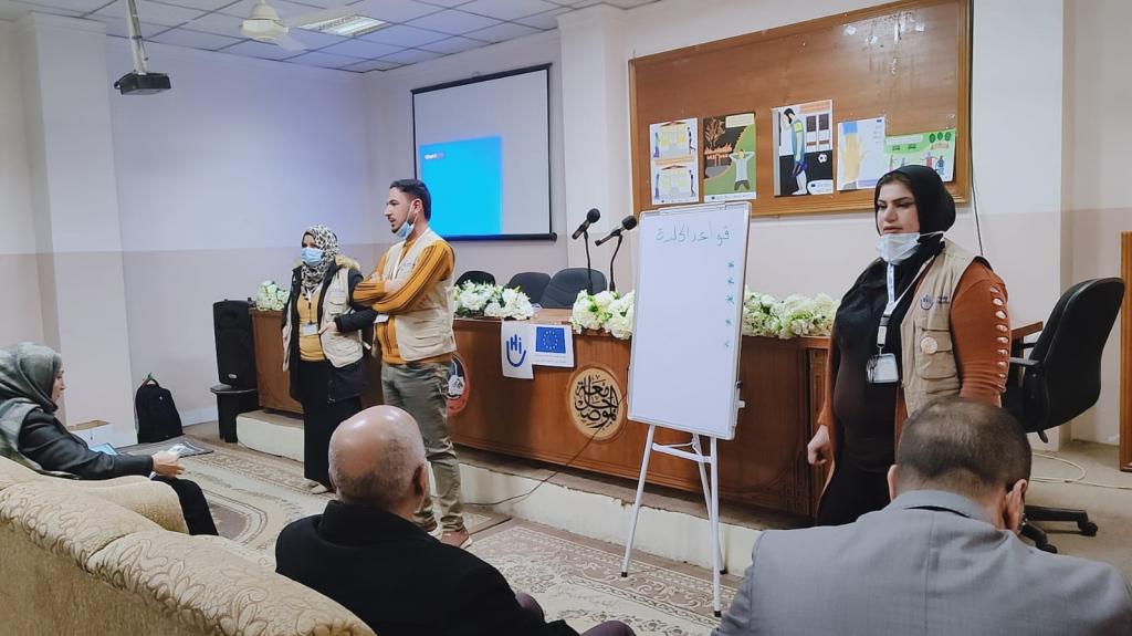 بإشراف السيد عميد كلية الآداب الاستاذ المساعد الدكتور محمد علي محمد عفين المحترم وبالتعاون مع المنظمة الدولية للإعاقة وبحضور الاستاذ الدكتور حارث حازم ايوب المعاون العلمي المحترم أقيمت اليوم (الاثنين) الموافق 13 كانون الاول 2021 وعلى قاعة ابن الأثير في كلية الآداب ورشة تدريبية حول تقديم النفسي والاجتماعي والصحي لذوي الإعاقة من الطلبة بشكل خاص وإلى أفراد المجتمع بشكل عام عن طريق دور ذوي الاختصاص في هذا المجال (الباحث النفسي والاجتماعي والمرشد النفسي والمعالج الطبي) حتى ولو اقتضى الأمر القيام بزيارة ذوي الإعاقة الى منازلهم للتعرف على مشكلاتهم الاجتماعية والنفسية والصحية لغرض توفير كافة المستلزمات والامكانيات للتخفيف من معاناتهم وحل مشكلاتهم.