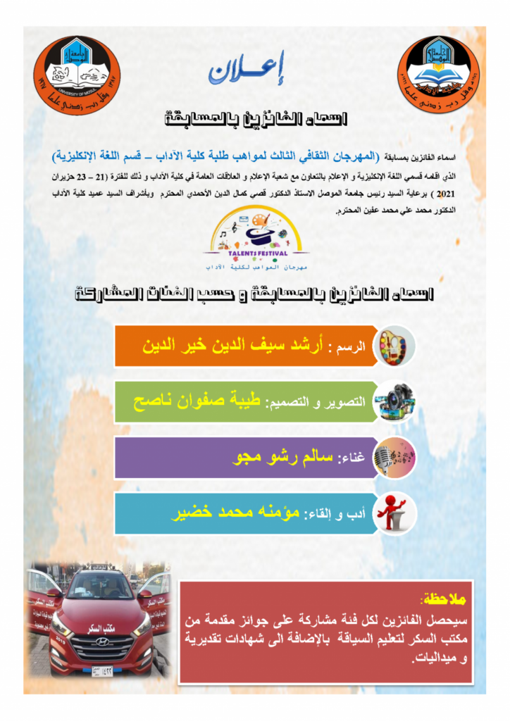 اسماء الفائزين في مسابقة مهرجان المواهب الثالث