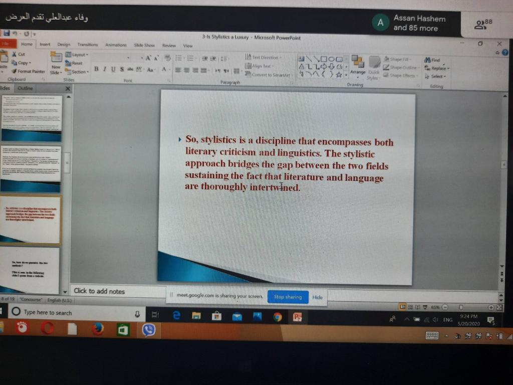 ورشة عمل بعنوان (هل الاسلوبية ترف؟ Is stylistics a luxury?)