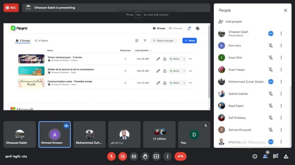 ورشة عمل في قسم اللغة الفرنسية حول منصة Flipgrid