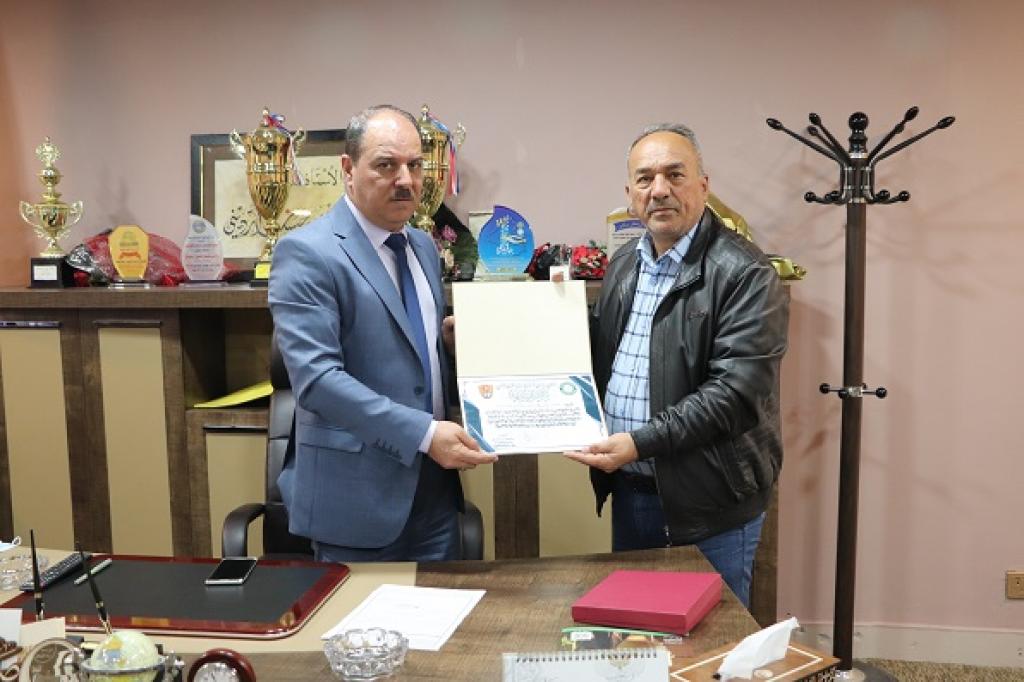 تسليم درع وشهادة شكر من نادي بلدية الموصل الى السيد عميد كلية التربية الاساسية