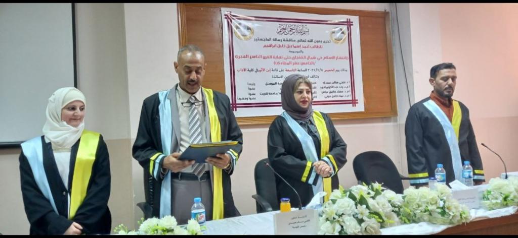 ترأس الاستاذ الدكتور فتحي سالم حميدي اللهيبي رئيس قسم التاريخ في كلية التربية الاساسية في جامعة الموصل يوم الخميس الموافق 8/7/2021 لجنة مناقشة طالب الماجستير احمد اسماعيل خليل في رسالته الموسومة (انتشار الاسلام في شمال القفجاق ) في قسم التاريخ/ كلية الاداب /جامعة الموصل .