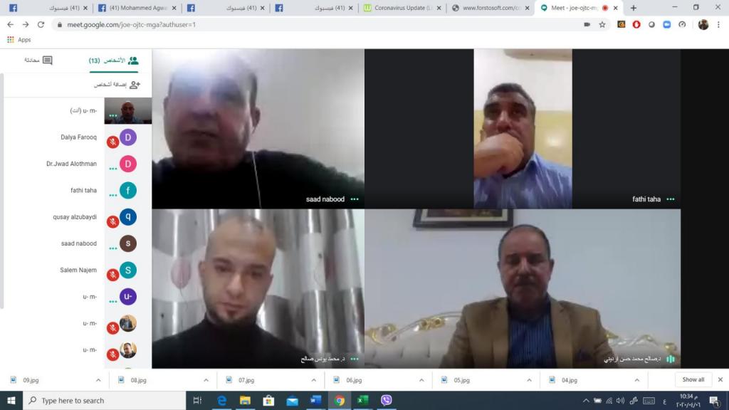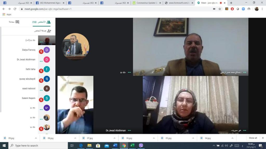 برئاسة الاستاذ الدكتور صالح ارديني عميد كلية التربية الاساسية وحضور جميع رؤساء الاقسام العلمية الاحد عشر في الكلية ومعاوني العميد العلمي والاداري اجتمع مجلس الكلية بالساعة التاسعة من مساء يوم الاثنين الموافق 6/4/2020 عبر الفضاء الالكتروني وعلى شبكة الانترنت باستخدام برنامج Google Meeting ، حيث تمت مناقشة التوجيهات الصادرة من قبل وزارة التعليم العالي والبحث العلمي ورئاسة الجامعة حول التعليم الالكتروني الذي اصبح استخدامه ضرورة ملحة في هذا الوقت ومهما جدا وتجب متابعته بشكل سريع والتأكيد على أن لا تكون المحاضرة تقليدية وإنما مركزة ومحفزة وتنتهي بالمناقشة وباسئلة ، وتمت ايضا مناقشة نظام المقررات للمرحلة الاولى والترقيات العلمية وتسجيل البحوث والعديد من الامور الادارية التي تخص المتقاعدين والمحاضرين وتم اتخاذ القرارات والاجراءت المناسبة والقانونية بخصوصها .