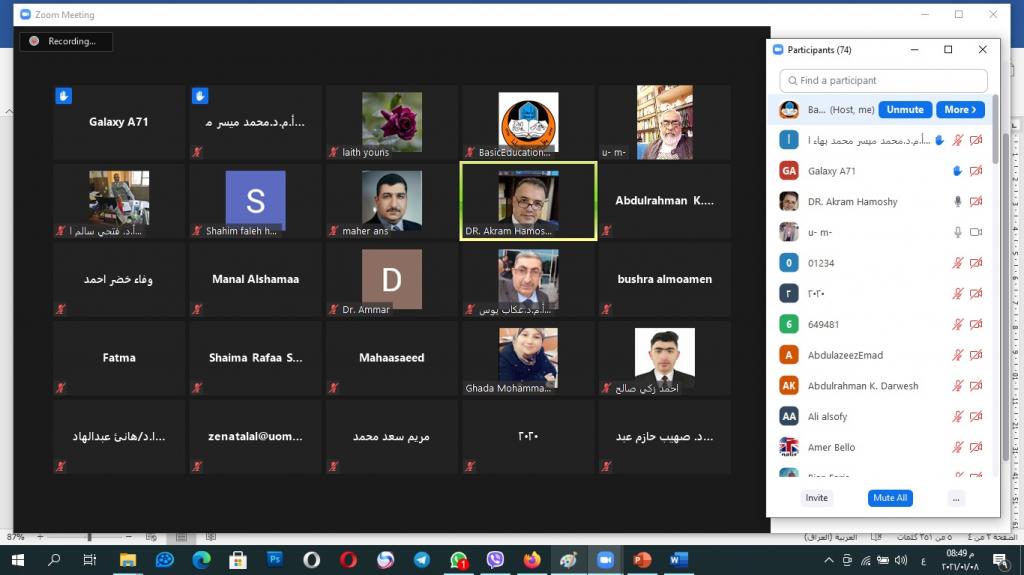 اختتمت أعمال الندوة العلمية الثالثة التي أقامتها وحدة التعليم المستمر في كلية التربية الاساسية بالتعاون مع قسم التاريخ بالكلية والمعهد الثقافي الفرنسي العراقي في الموصل ومركز دراسات الموصل وبرعاية الأستاذ الدكتور قصي كمال الدين الاحمدي رئيس جامعة الموصل المحترم و بإشراف الأستاذ المساعد الدكتور صفاء الدين عبد الله سليمان عميد كلية التربية الأساسية المحترم وتحت عنوان ( الإرث التاريخي لمدينة الموصل عبق الماضي وهموم الحاضر ) وذلك بالساعة الثامنة من مساء يوم الجمعة الموافق 8/1/2021 وعبر الفضاء الالكتروني لمنصة Zoom ، بدأت الجلسات العلمية للندوة التي قدمها الأستاذ الدكتور فتحي سالم ساير رئيس قسم التاريخ ، تناولت الندوة عرض لأوراق عمل وبحوث حول تاريخ مدينة الموصل وأقضيتها ونواحيها قام بعرضها أساتذة مختصون بتاريخ المدينة . أهداف الندوة في اليوم الثاني الى عرض عن جامع النبي يونس ( عليه السلام ) بين الماضي والحاضر ، ودراسة الإرث الحضاري المفقود لتاريخ الموصل من خلال كتاب بغية الطلب لابن العديم ( ت660 – 1261م ) ، وأيضا دراسة الموقع الجغرافي للموصل وأثره في سياسة الخلافة العباسية ( تمرد الموصل 180 هـ /796 م وموقف أبو سيف أنموذجاً ) ، ودراسة الموصل في كتابة الرحالة الأجانب والعادات والتقاليد الموصلي بين الماضي والحاضر ، عرض المكانة الاجتماعية للحرف الشعبية الموصلية ، وتم عرض الحركات التبشيرية في الموصل وأرثها الثقافي والصحي للقرنين الثامن عشر والتاسع عشر ، ودراسة الصناعة العصر الزنكي ودورها في التراث الموصلي ، التاثير الحضاري لعلماء الموصل ودورهم في استقطاب علماء الغرب وعرض خطط الموصل من خلال كتاب الموصل للازدي وعرض أبواب مدينة الموصل ، وعرض الحضارة الاشورية لمدينة النمرود ، وحضر الندوة جميع تدريسيي قسم التاريخ في الكلية وكلية التربية للعلوم الإنسانية في الجامعة عدد كبير من المشاركين من الجامعة وخارجها الذين أغنوها بمداخلاتهم واستفساراتهم وأسئلتهم العلمية.