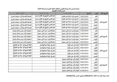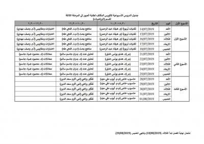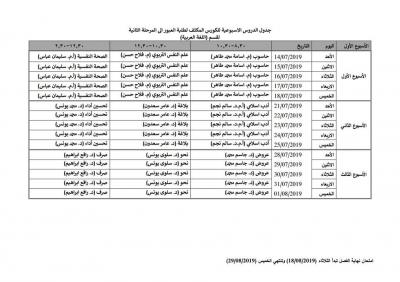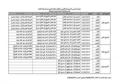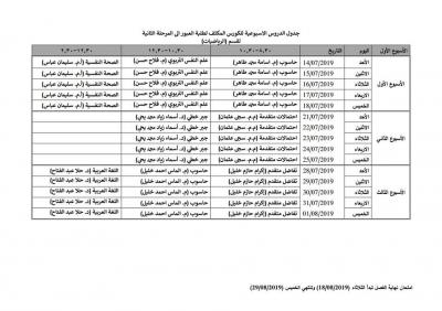 ادناه اسماء طلبة كلية التربية الاساسية المشمولين بالكورس الكثف الذي سيبدأ يوم الأحد 14/7/2019 القادم مع الجداول الخاصة بكل قسم .. المواد العامة سيتم اخذها بقاعة القادسية …. لكل الاقسام بصورة مشتركة….