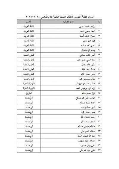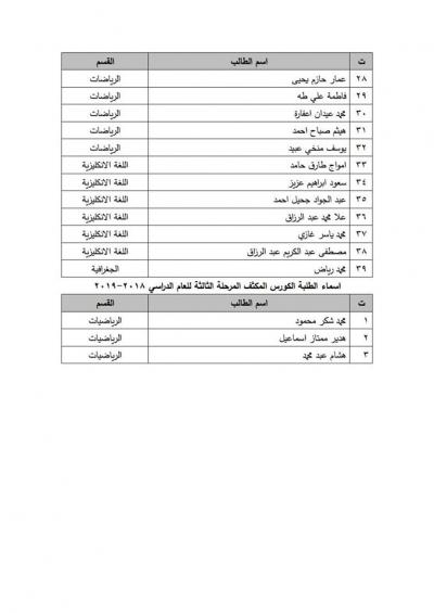 ادناه اسماء طلبة كلية التربية الاساسيةالمشمولين بالكورس الكثف